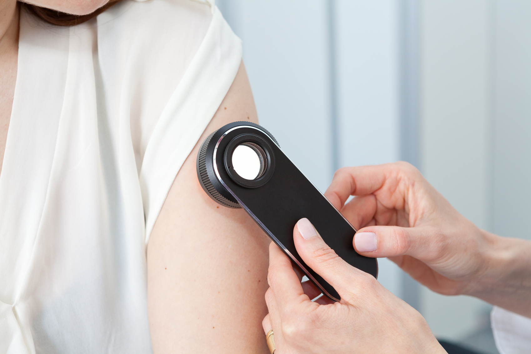 Дерматоскопия - это осмотр различных новообразований под большим увеличением без повреждения кожи.